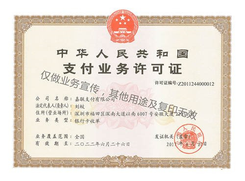 立刷pos機是由嘉聯支付有限公司推出的產品,嘉聯支付有限公司于2009年正式成立,注冊資本為2億元人民幣,是中國人民銀行批準授予《支付業務許可證》(許可證編號:Z2011244000012)的第三方金融支付機構。嘉聯支付獨創POS端營銷與收單系統無縫對接的服務模式,提供多種型號的智能POS機,為中小企業、行業客戶、金融機構和投資者提供POS收單、金融支付、理財管理、便民應用等綜合性的金融支付服務。